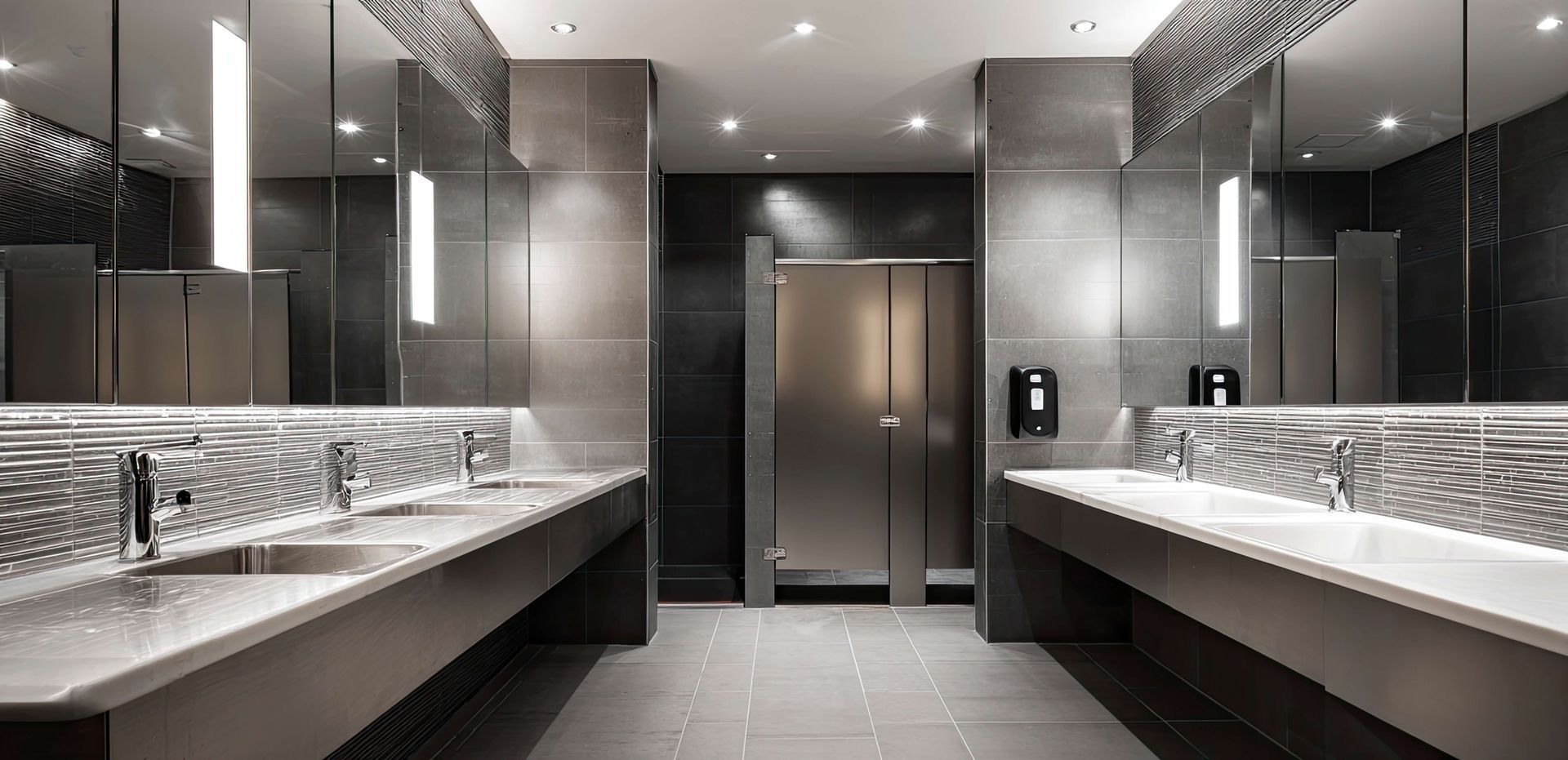 This is commercial bathroom design for real business: durable spaces built fast, backed by accountability.